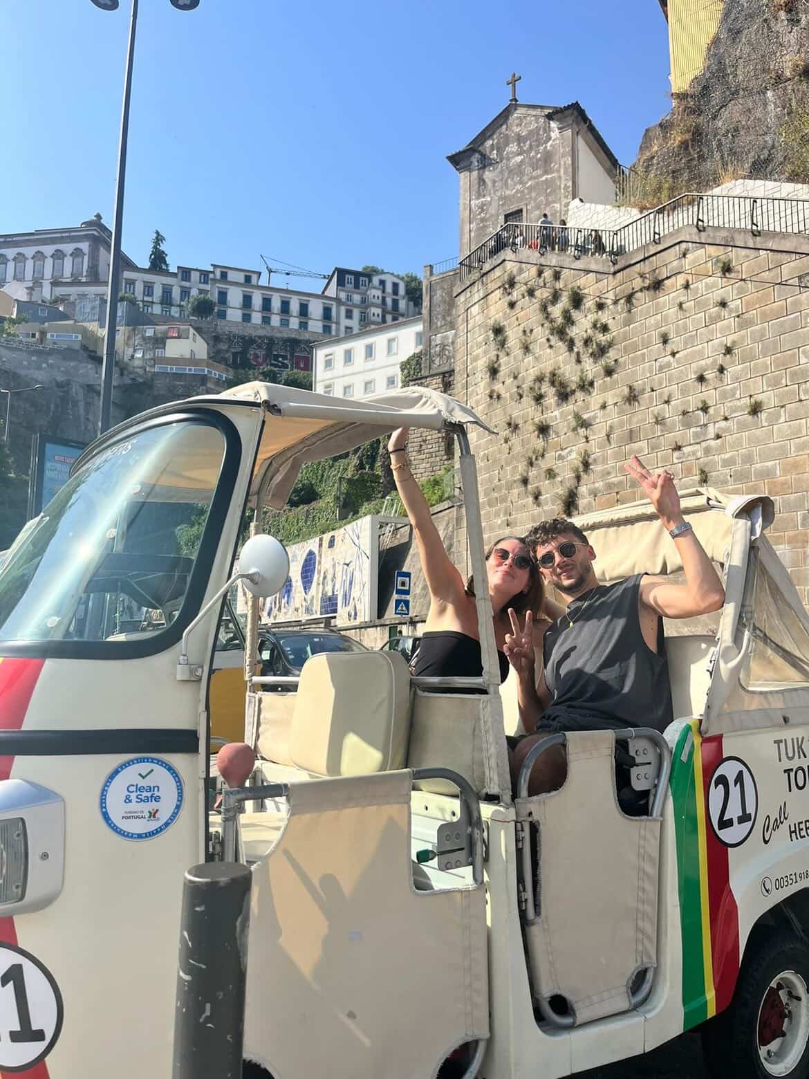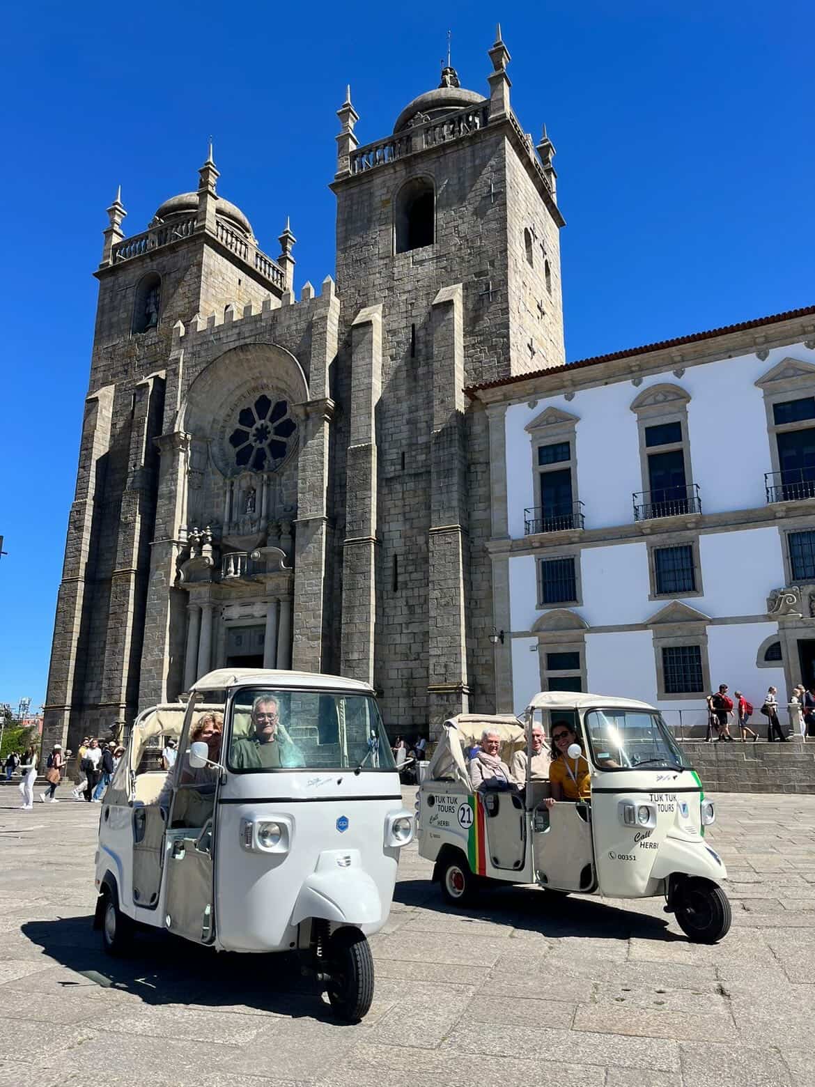 Discover Porto and Vila Nova de Gaia in a unique way, in a classic Piaggio Tuk Tuk, as the sun sets and the city transforms into golden hues.